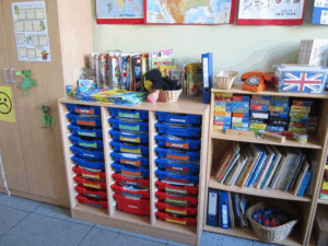 In allen Räumen gibt es für die Schülerinnen und Schüler Eigentumsfächer, so dass die Kinder Bücher, Hefte und Mappen, sowie Bastelmaterialien in der Schule belassen können.