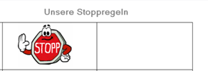 Kinder, die sich nicht an die Stopp-Regel halten werden von der aktuellen Pause ausgeschlossen und müssen sich im Pausenraum anmelden. Dort erhalten sie eine Aufgabe.
